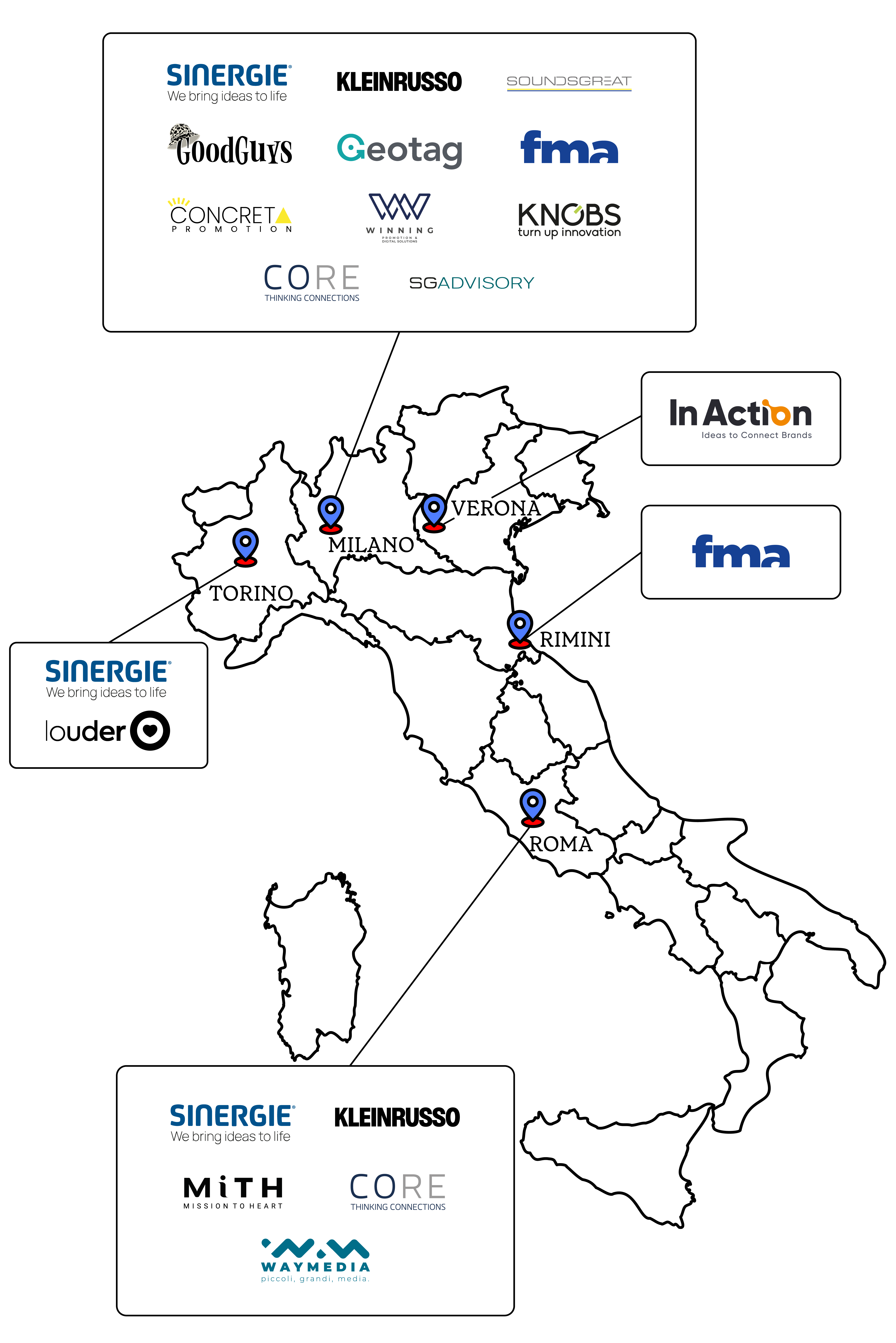 Siamo #goodpeople e ci integriamo riconoscendoci nei valori comuni ma anche nell’importanza delle differenze. Per questo abbiamo sedi operative su tutto il territorio. Perché vogliamo essere capaci di parlare un linguaggio internazionale, ma sapendo interfacciarci a livello locale per essere vicini al cliente. Per poter accelerare le decisioni e le proposte.